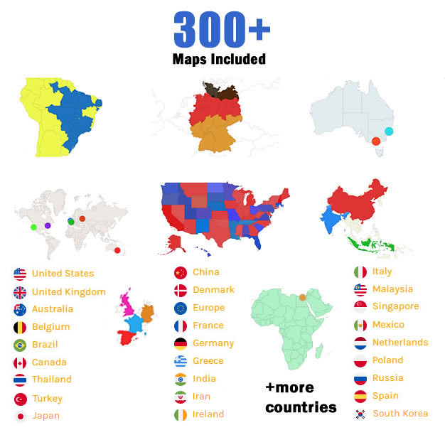 - Vector Maps of India, China, Turkey, Romania, Japan, Spain, Italy, France, Canada, Germany, UAE, Syria, Iceland, Poland, Malaysia, Australia, Mexico, Brazil, Indonesia, Nepal, UK, US, Russia and all countries included
