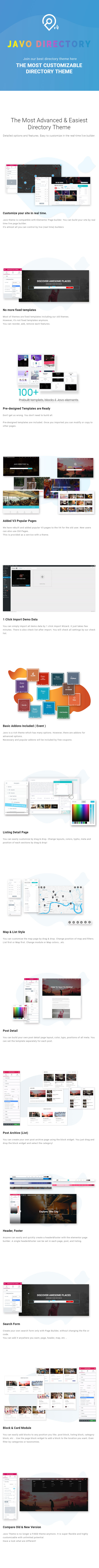 Javo is a Directory WordPress Theme being distributed by Themeforest. Javo allows you to create directory website with wordpress platform. Features Responsive Visual Composer Revolution Slider Ultimate Addons SEO Friendly Unlimited Color Options And many more