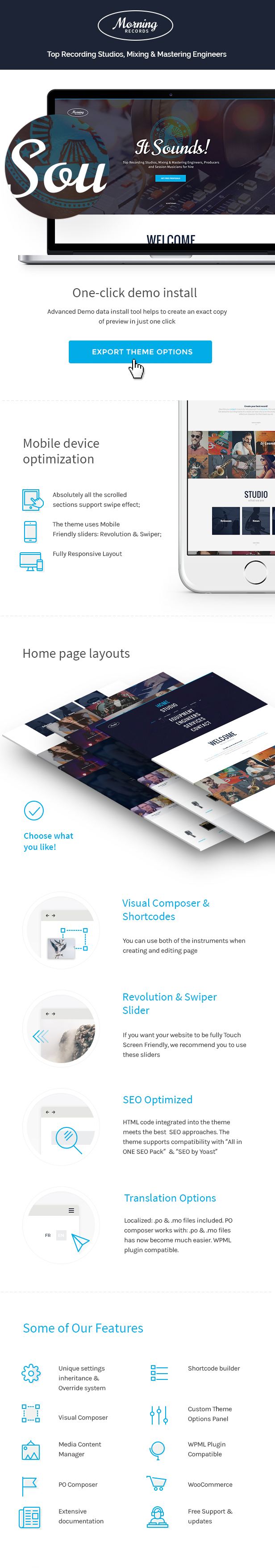 Build fully custom pages by mixing and matching the elements available with the theme. The intuitive drag-and-drop interface of WPBakery’s Page Builder enables you do that without any coding knowledge and above all you?re saving $45 on this premium plugin, it comes free with the theme.