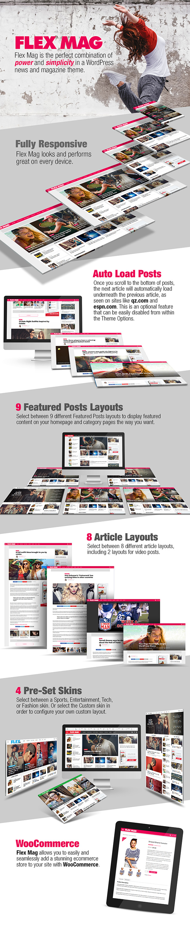 WooCommerce Ready. Full support, right out the box – for v1.5 & v2.0+. You can view an example shop here – Flexform Shop Demo.